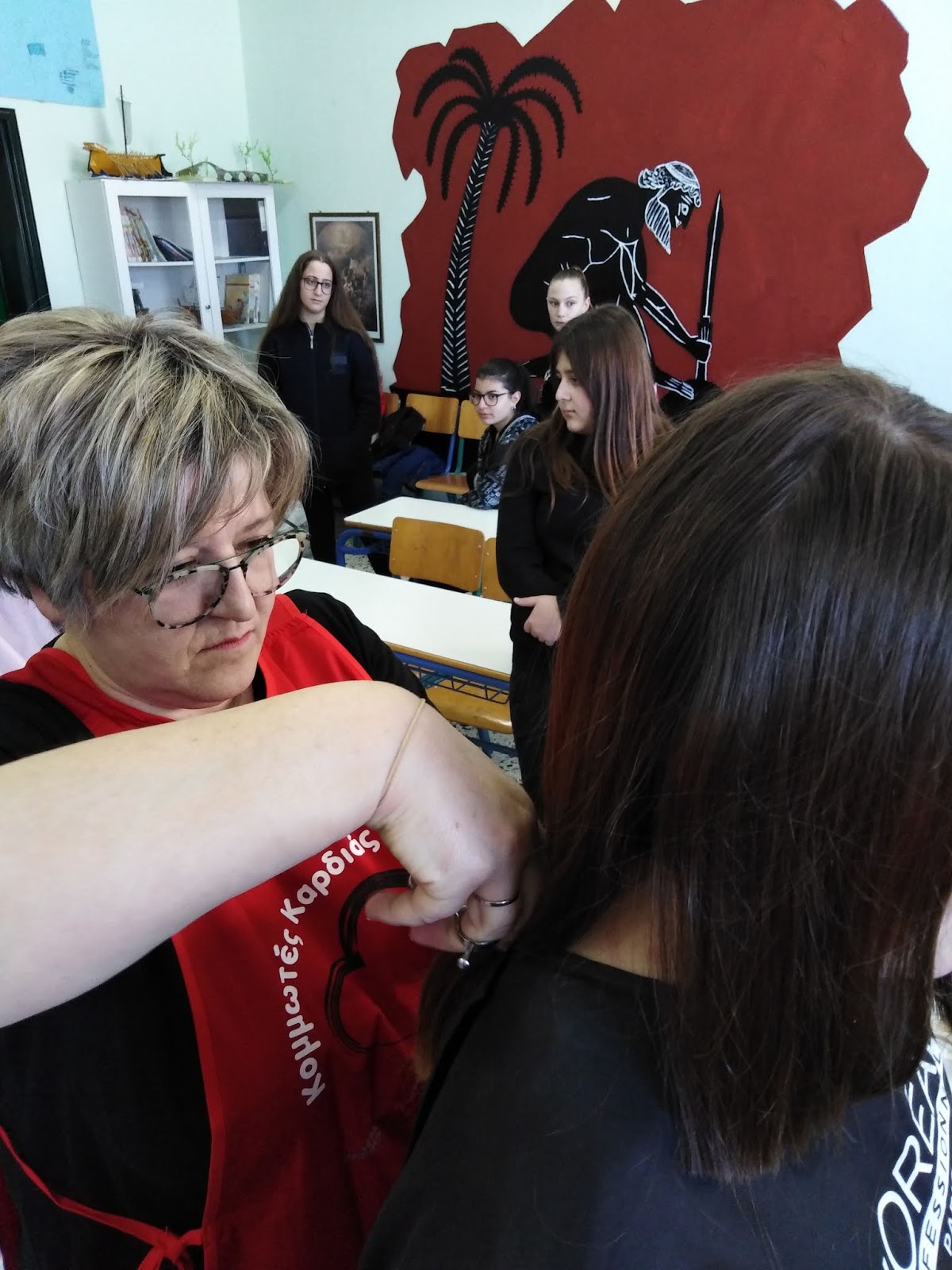 Αρωγός αυτή της πρωτοβουλίας ήταν η εθελοντική ομάδα κομμωτών Ξάνθης « Κομμωτές της Καρδιάς » οι οποίο ανέλαβαν το κατάλληλο κόψιμο των μαλλιών από τις μαθήτριες.
