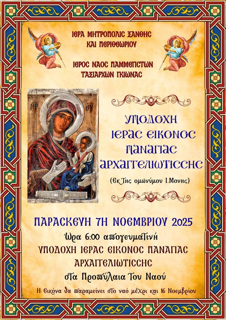 Ιερός Ναός Παμμεγίστων Ταξιαρχών Γκιώνας-Υποδοχή της εικόνας Παναγίας Αρχαγγελιωτίσσης 5 Νοεμβρίου, 2025 xanthidaily