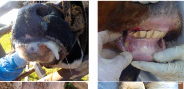Κλινική εικόνα: Αυξημένη σιελόρροια, ανορεξία, κατάπτωση, πυρετός, χωλότητα, μείωση της γαλακτοπαραγωγής, φυσαλίδες και αλλοιώσεις. Αποβολές και αιφνίδιοι θάνατοι των νεογνών. Αλλοιώσεις στα μεσοδακτύλια διαστήματα και στην στεφάνη των οπλών, συχνά συνοδευόμενη από χωλότητα. Αυξημένη σιελόρροια, διαβρώσεις και έλκη στη στοματική κοιλότητα και την γλώσσα.