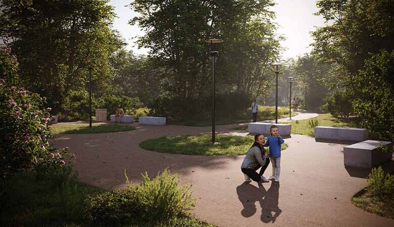 Η αρχιτεκτονική και τεχνική μελέτη του έργου προβλέπει μια ολιστική αναμόρφωση της περιοχής, η οποία εκκινεί από την καθαίρεση των παλαιών, ερειπωμένων υποδομών και την εκτεταμένη εξυγίανση του ανάγλυφου. Στη θέση τους, αναπτύσσεται ένα νέο, οργανωμένο δίκτυο κυκλοφορίας με βασικά και δευτερεύοντα μονοπάτια από φιλικά προς το περιβάλλον υλικά, τα οποία έχουν σχεδιαστεί με αυστηρές προδιαγραφές και ήπιες κλίσεις, ώστε να εγγυώνται την ανεμπόδιστη και ασφαλή πρόσβαση για τα Άτομα με Αναπηρία σε κάθε σημείο δραστηριότητας. Παράλληλα, προβλέπεται η ανακατασκευή της γραφικής πεζογέφυρας η οποία θα εξασφαλίζει την αρμονική σύνδεση των επιμέρους ζωνών του πάρκου. Στην καρδιά του άλσους θα ανεγερθεί ένα υπερσύγχρονο, βιοκλιματικό αναψυκτήριο το οποίο θα πλαισιώνεται από ξύλινες πέργκολες-πολυχώρους, ιδανικές για τη φιλοξενία υπαίθριων πολιτιστικών εκθέσεων και εκδηλώσεων. Ιδιαίτερη μέριμνα λαμβάνεται για τη νέα γενιά, με την κατασκευή δύο ξεχωριστών, ασφαλών παιδικών χαρών για νήπια και παιδιά σχολικής ηλικίας, στίβου αναρρίχησης καθώς και ενός υπαίθριου θεάτρου. Το στοιχείο της βιωματικής επαφής με τη φύση ενισχύεται μέσω ενός εκπαιδευτικού λαχανόκηπου φυτεμένου με τοπικά βότανα και μυρωδικά που θα φέρουν ειδικές ενημερωτικές πινακίδες. Όλες αυτές οι λειτουργίες θωρακίζονται με την κατασκευή νέας, ασφαλούς περίφραξης, την εγκατάσταση ολοκληρωμένων δικτύων ύδρευσης, αποχέτευσης και πυρόσβεσης, καθώς και την τοποθέτηση σύγχρονου συστήματος “έξυπνου” φωτισμού με ιστούς και χαμηλά φωτιστικά κολωνάκια που θα προσδίδουν αίσθηση ασφάλειας τις νυχτερινές ώρες. Τέλος, η δημιουργία ενός άρτια οργανωμένου χώρου στάθμευσης είκοσι τριών θέσεων, με πρόβλεψη για οχήματα ΑμεΑ και τουριστικά λεωφορεία, θα διασφαλίσει την ομαλή πρόσβαση από το οδικό δίκτυο.