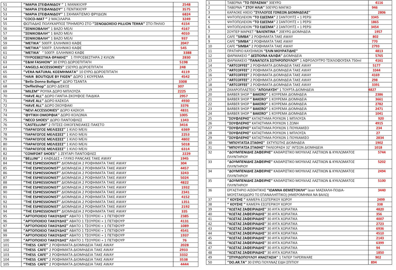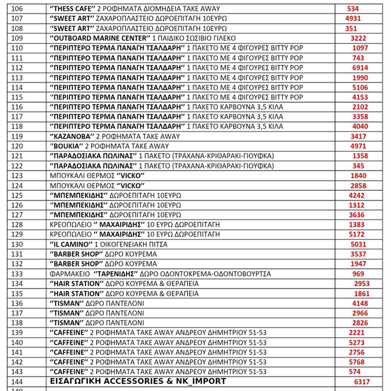 Παρακάτω αναλυτικά όλα τα δώρα και τα καταστήματα: