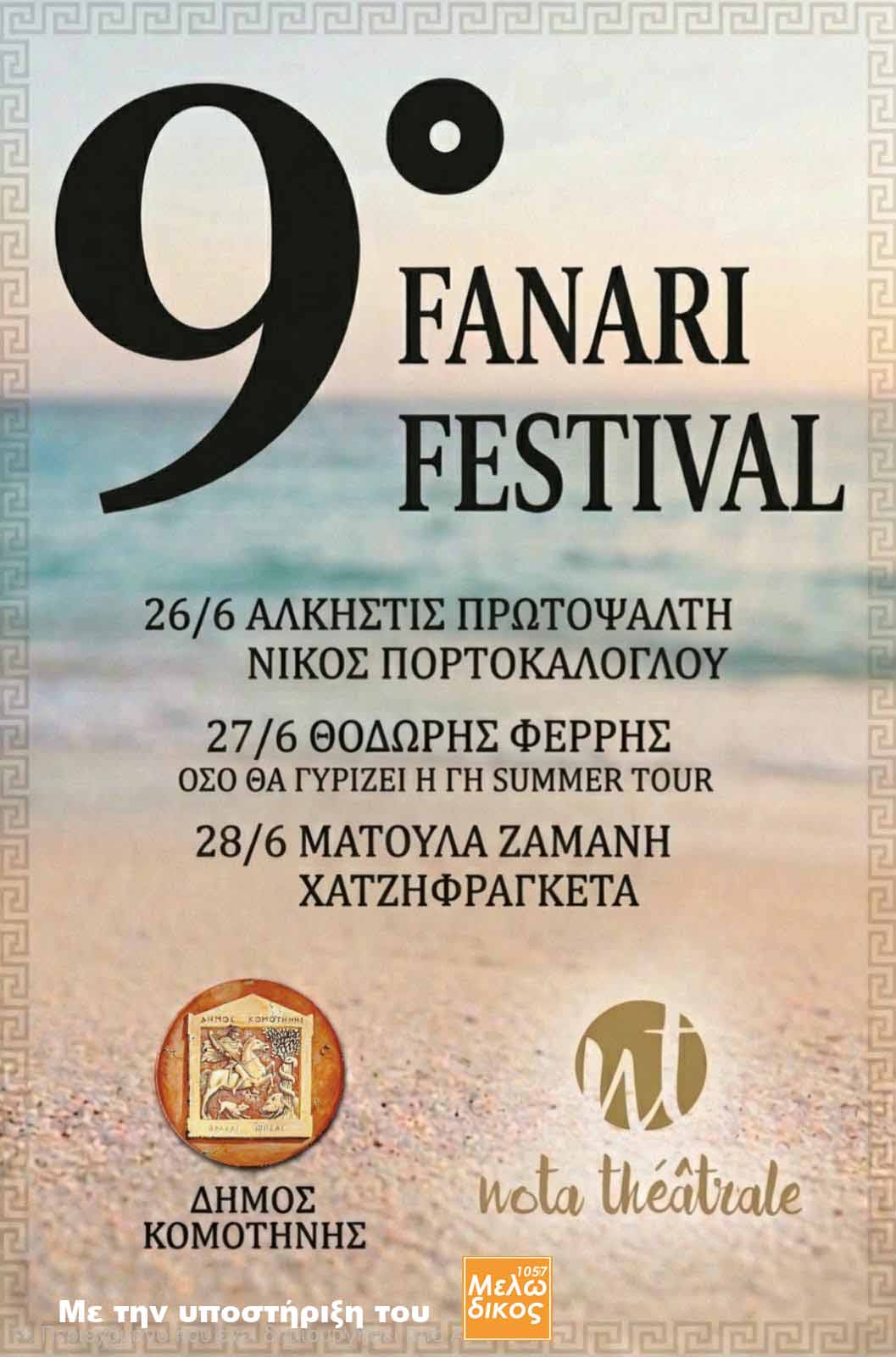 Το Fanari Festival όπως κάθε χρόνο έρχεται με την υποστήριξη του Νο1 Ελληνικού ραδιοφώνου της Ξάνθης του Μελωδικού 105,7