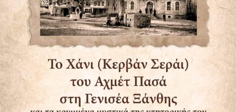 Ξάνθη: “Το Χάνι (Κερβάν Σεράι) του Αχμέτ Πασά στη Γενισέα Ξάνθης” με ομιλητή των Γ.Μπατζακίδη 6 Φεβρουαρίου, 2023