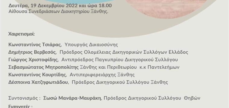 Διεθνούς επιστημονική ημερίδα Ελλάδας-Κύπρου στην Ξάνθη με θέμα ” (συν) επιμέλεια μετά το διαζύγιο” 14 Δεκεμβρίου, 2022