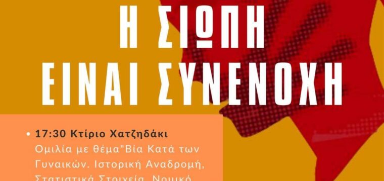 Εκδήλωση στο Χατζηδάκειο και πορεία από τον Δικηγορικό Σύλλογο Ξάνθης. “ΟΧΙ ΣΤΗΝ ΒΙΑ – Η ΣΙΩΠΗ ΕΙΝΑΙ ΣΥΝΕΝΟΧΗ” 21 Νοεμβρίου, 2022