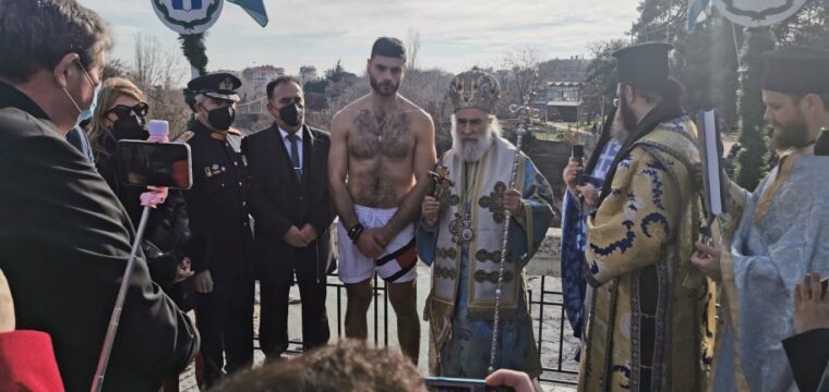 Mε σύμμαχο τον καιρό και μάσκες η κατάδυση του Τιμίου Σταυρού στο ποταμό Κόσυνθο Ξάνθης. 6 Ιανουαρίου, 2022