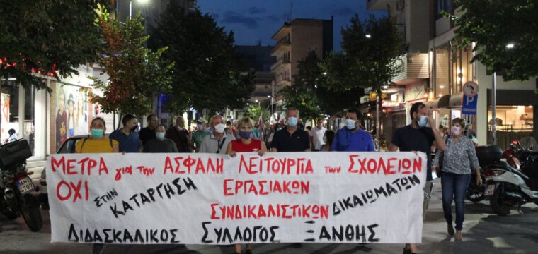 Πορεία διαμαρτυρίας στη Ξάνθη για το άνοιγμα των σχολείων και τα εργασιακά δικαιώματα των εκπαιδευτικών. 15 Σεπτεμβρίου, 2021