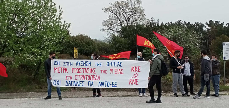 Ξάνθη: Παρέμβαση έξω από το στρατόπεδο του Πετροχωρίου από δυνάμεις του ΚΚΕ και της ΚΝΕ. 18 Απριλίου, 2021