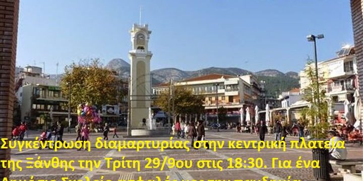 Ξάνθη: Συγκέντρωση διαμαρτυρίας στη κεντρική πλατεία για τα σχολεία και την εκπαίδευση. 29 Σεπτεμβρίου, 2020