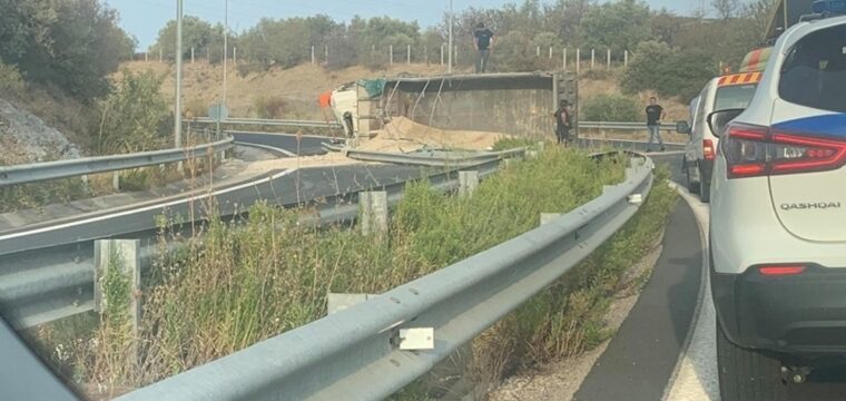 Θράκη: Τροχαίο με φορτωμένο φορτηγό -Έπεσε επάνω σε προστατευτικές μπάρες και αναποδογύρισε. 26 Σεπτεμβρίου, 2020