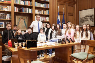 Στον Κυριάκο Μητσοτάκη μαθητές του μειονοτικού Δημοτικού Σχολείου Πάχνης Ξάνθης